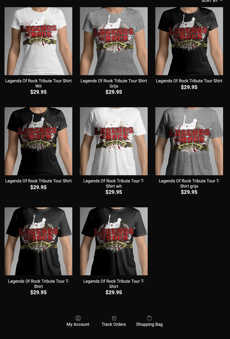 Beleef de magie van rock 'n roll met onze exclusieve Legends of Rock Tribute Tour merchandise! Hier vind je alles wat je nodig hebt om jouw rockervaring compleet te maken, van stijlvolle bandshirts tot unieke verzamelitems. Of je nu een trouwe fan bent of op zoek bent naar het perfecte cadeau voor een rockliefhebber, in onze webshop ben je aan het juiste adres.